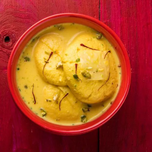 Indulge in the delicate sweetness of our Ras Malai, a traditional Indian dessert that’s as luxurious as it is delicious. Soft, spongy cheese curds (paneer) are soaked in a rich, creamy milk sauce infused with aromatic cardamom and saffron. Each bite of this decadent treat offers a perfect blend of textures and flavors, with hints of rosewater and a sprinkle of pistachios adding a delightful crunch. Served chilled, Ras Malai is the ultimate ending to any meal, bringing a touch of elegance and a burst of indulgence to your dining experience.